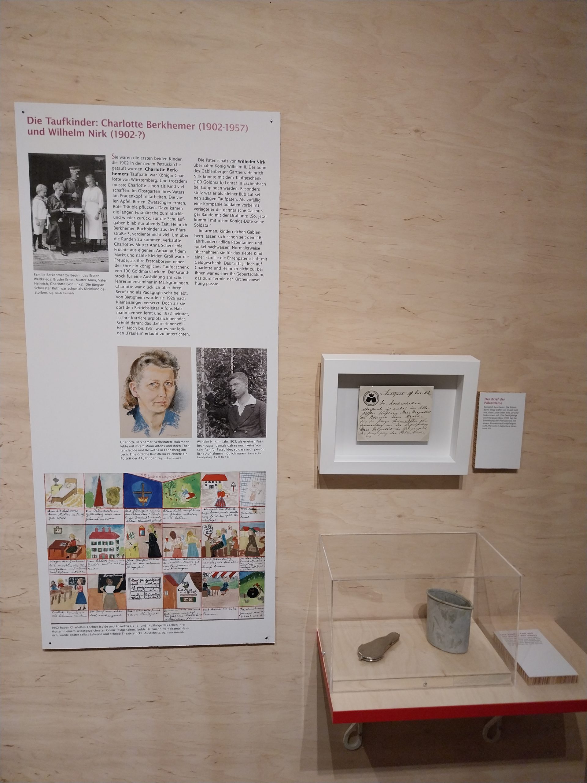 Zu den Aufgaben des Landeskirchlichen Archivs gehört es auch, einzelne besondere Archivalien für Ausstellungen als Leihgaben für einen begrenzten Zeitraum zur Verfügung zu stellen. Solche Anfragen erreichen uns immer wieder. Sehr gerne haben wir auch die Ausstellung zum 750-jährigen Jubiläum der urkundlichen Ersterwähnung des Stuttgarter Stadtteils Gablenberg des Museumsvereins Stuttgart-Ost (Muse-O) unterstützt. Die kleine, aber feine Ausstellung wurde am 17. November eröffnet und wird bis Mai 2025 in den Rämlichkeiten des Vereins in der Alten Schule in Gablenberg zu sehen sein. Sie zeigt zum einen die Geschichte des ehemaligen Weingärtnerdorfes und heutigen Stadtteils, zum anderen ausgewählte Personen, die dort gelebt haben. 31 Menschen aus den vergangenen Jahrhunderten werden vorgestellt und spiegeln mit ihren Lebensgeschichten gesellschaftliche Entwicklungen wider. Annik Aicher hat unter anderem in unserem Archiv zu diesen besonderen Menschen recherchiert. Aus unseren Beständen ist in der Ausstellung ein Manuskript eines Gedichts des Pfarrerdichters Albert Knapp zu sehen, der 1821 als Vikar in Gablenberg wirkte. In diesem Gedicht würdigt er die Gablenberger Weingärtnerin Jakobine Nanz, die ihn durch ihre Persönlichkeit stark beeindruckte. Außerdem haben wir eine handgeschriebene Karte der Palastdame Gräfin Olga von Üxküll, in der sie dem Gablenberger Mädchen Luise Stelter eine Brosche schenkt. Diese hatte Herzogin Wera bei der Einweihung der Kirche 1902 mit einem Blumenstrauß empfangen. Bei dem Einweihungsgottesdienst wurden auch zwei Kinder getauft. Für beide Kinder übernahm das anwesende Königspaar die Patenschaft. Zudem erhielten die Kinder ein großzügiges Geldgeschenk, das beiden später ein Lehramtsstudium ermöglichen sollte. Auch dieser Vorgang konnte durch die Recherchen in unserem Haus geklärt werden. Wir wünschen der Ausstellung viele interessierte Besucherinnen und Besucher.