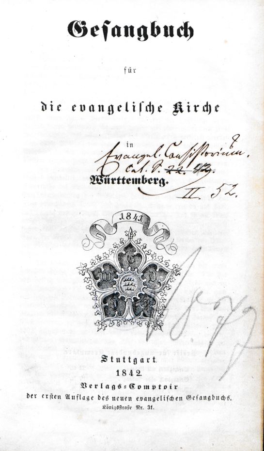 - Evangelisches Gesangbuch für Württemberg, 1842, Titelblatt. EHZ-Bibliothek Stuttgart