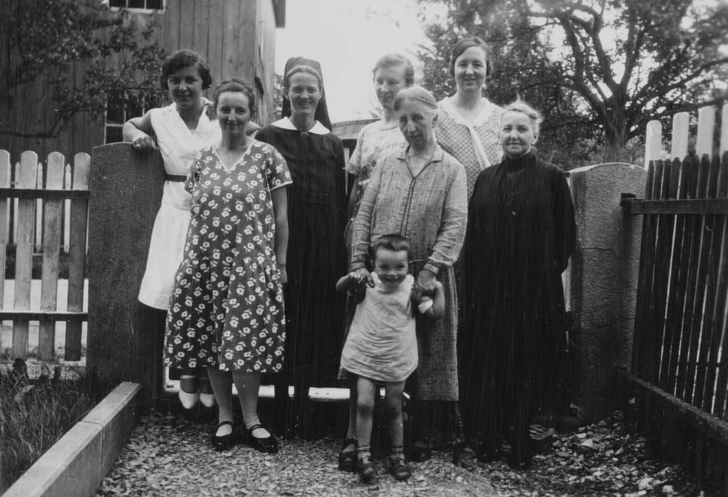 Die Verlobte Ruth Reiber (hinten rechts) zusammen unter anderem mit einer Gemeindeschwester (um 1930), LKAS, D 139, Nr. 23b.