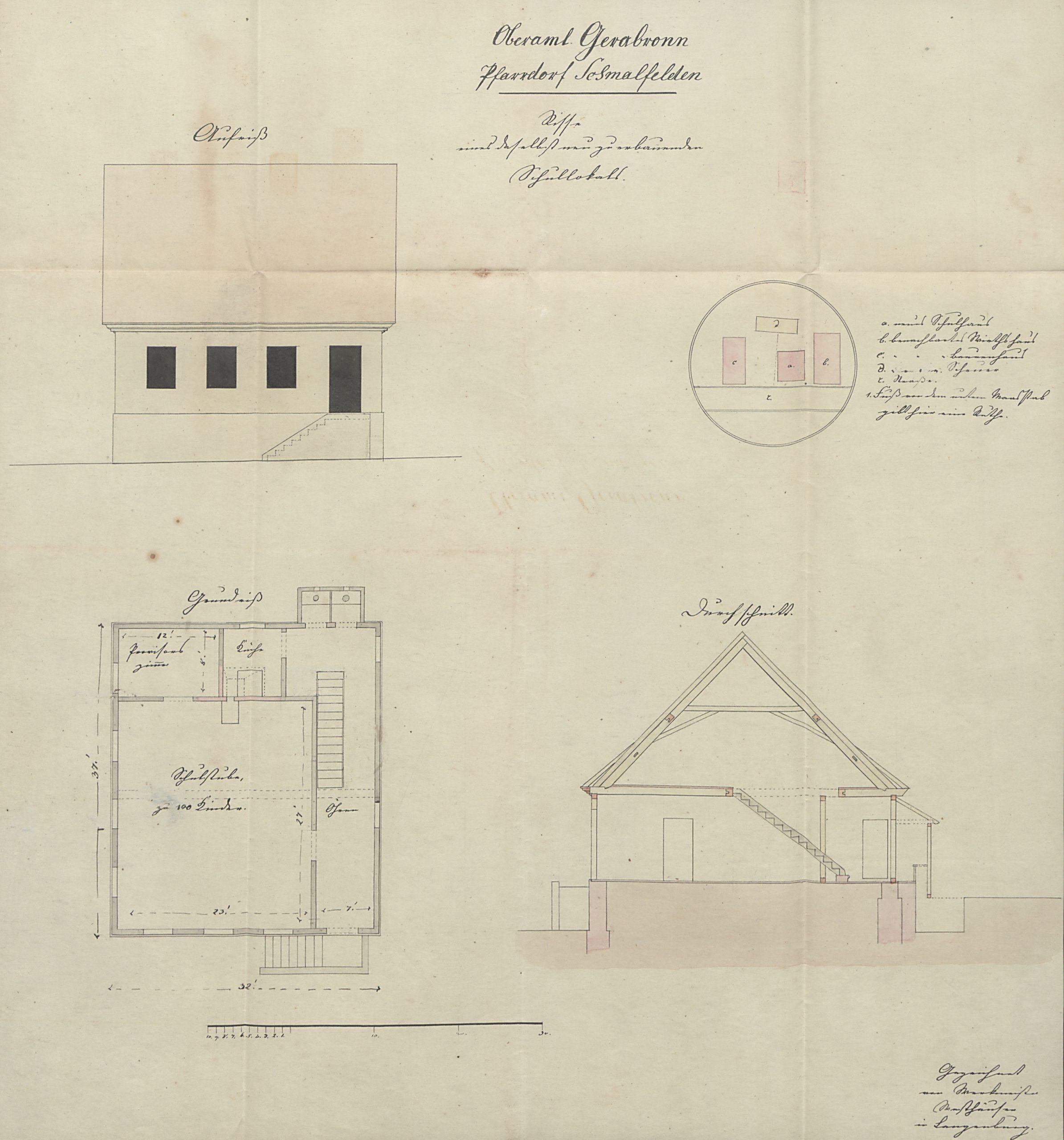Beitragsbild: Pfarrarchiv Schmalfelden, Nr. 232. Lageplan in der Schulhausakte.