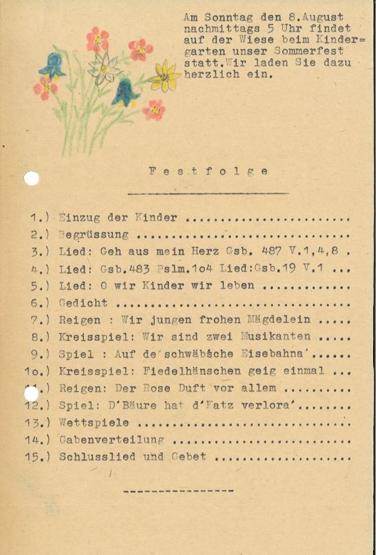 - K 60 Nr. 19/II, Einladung zum Sommerfest des Kindergartens Hessental ca. 1950