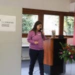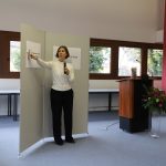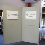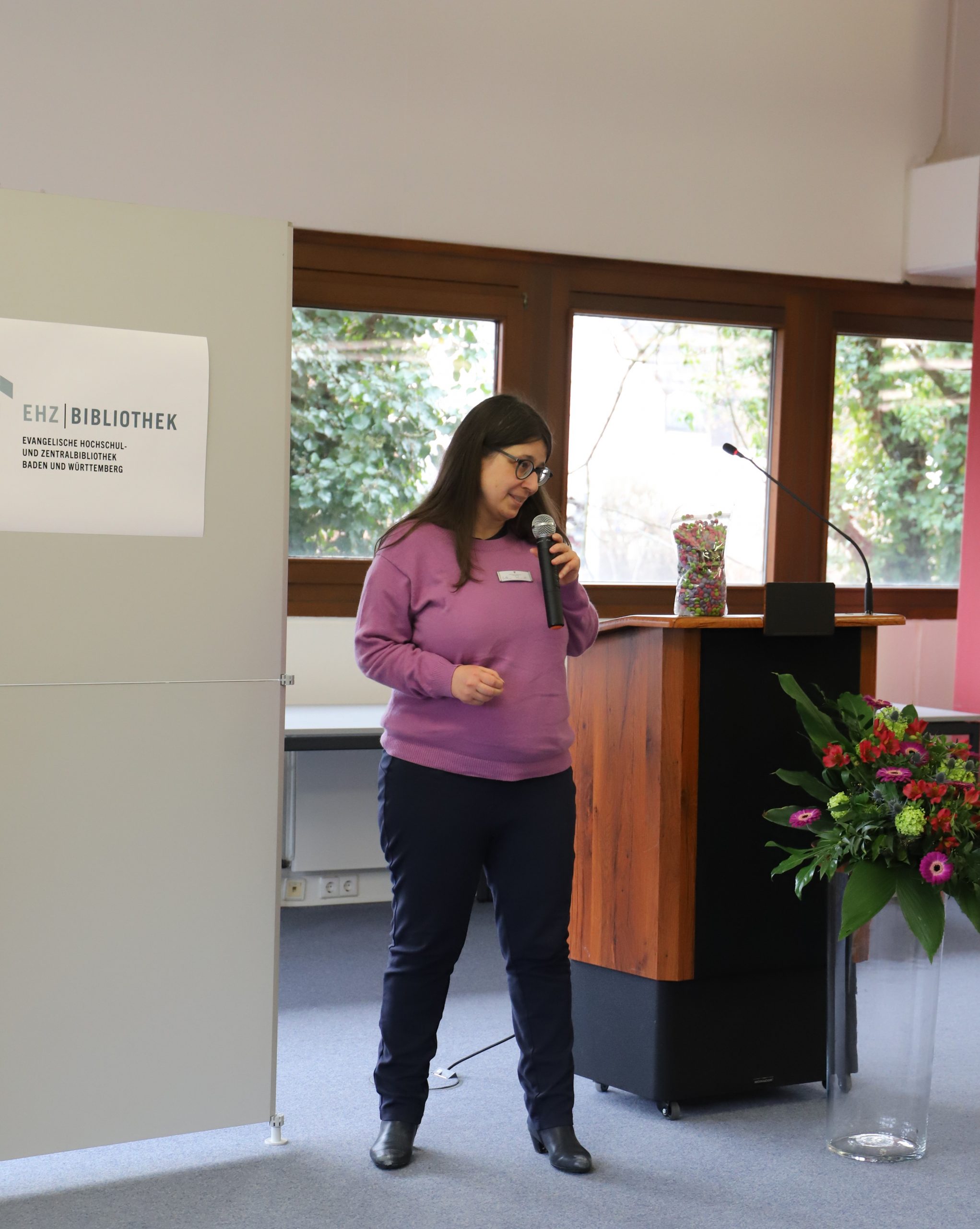 - Leiterin der EHZ-Bibliothek Frau Bettina Schmidt erläutert das neue Logo der Bibliothek. Foto: LKAS