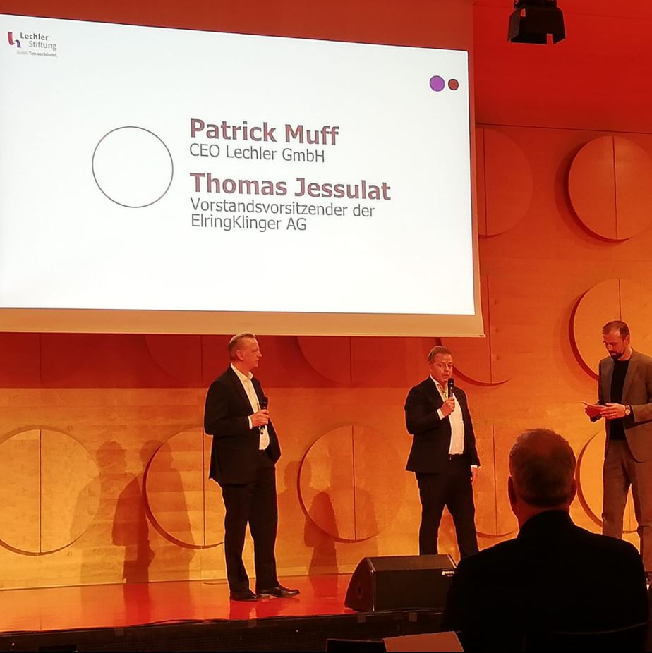 Von der Vergangenheit in die Gegenwart. „Die Lechler Firmen heute“ wurden von deren Geschäftsführern Thomas Jessulat für ElringKlinger AG und Patrick Muff für die Lechler GmbH vorgestellt. Beide erklärten, wie wichtig es den Unternehmern bis zum heutigen Tage ist, das Erbe Lechlers weiterzuführen und durch die Einnahmen beider Unternehmen die Lechlerstiftung zu unterstützen.