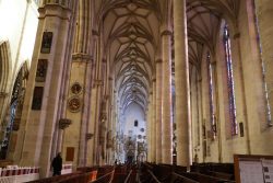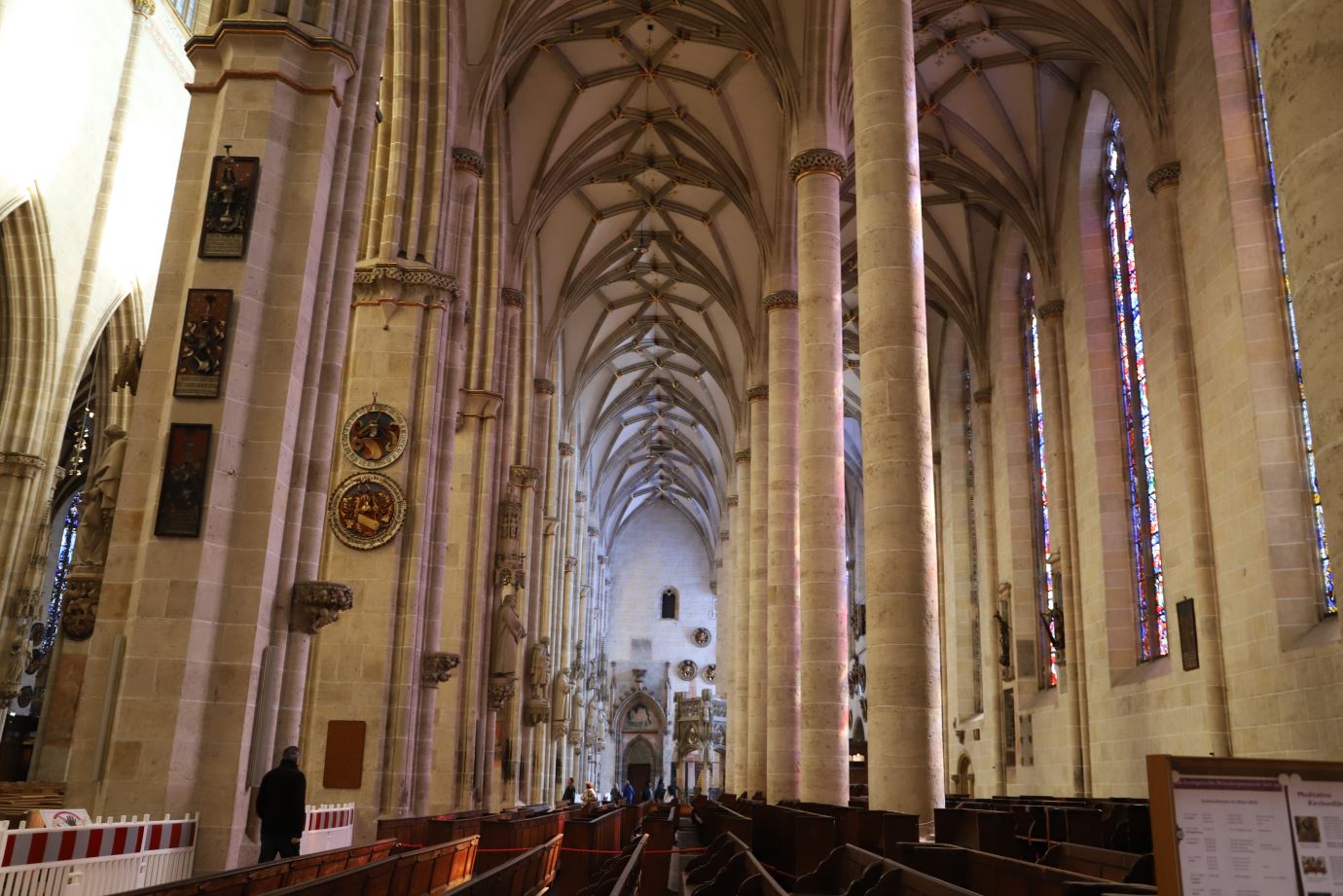 Allein durch die schiere Größe der Kirche war ein größeres Team und zwei Kameras vonnöten. Die Sonne schien prächtig auf das prestigeträchtige Münster, und wir waren alle gespannt auf die bevorstehende Aufgabe. Die damalige Aushilfsmesnerin Frau Heilbronn führte uns ein wenig herum und erzählte uns zahlreiche Anekdoten aus der Geschichte des Ulmer Münsters. Wir hatten die Befürchtung, dass es im Münster unfassbar kalt sein würde – und das war auch der Fall. Glücklicherweise waren jedoch die neu angebaute Sakristei und die Konrad-Sam-Kapelle beheizt. In letzterer breiteten wir uns aus, um die Vasa Sacra zu inventarisieren. Währenddessen begann die Praktikantin Frau Riehl, das Innere des Ulmer Münsters zu fotografieren.