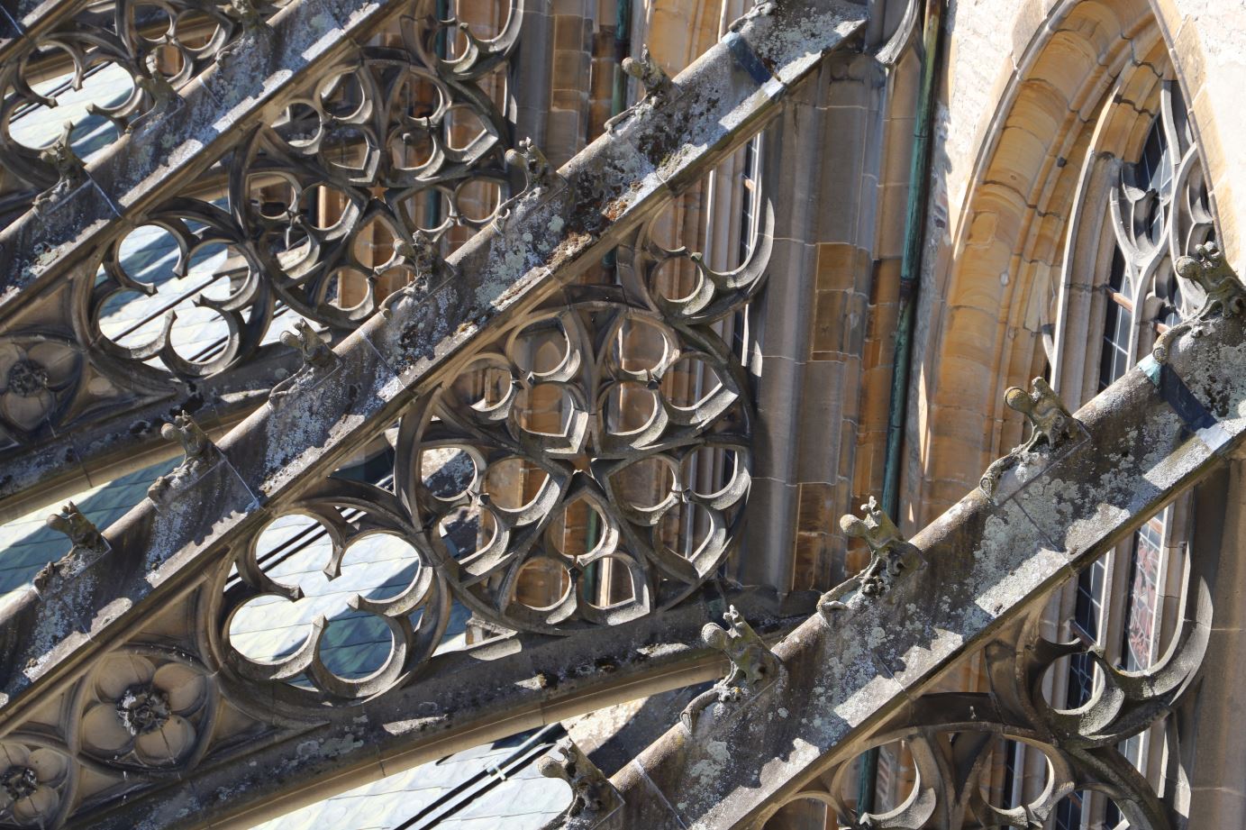 Mein persönliches Highlight war es, durch die verschiedenen Räume in den Türmen zu spazieren und die diversen Dachgestühle zu besichtigen. Jeder neue Raum war eine Überraschung für sich, da viele verzierte Bauteile, die später im Bauplan verworfen wurden, dort gelagert waren. Man konnte mehrere Spuren von Planänderungen während des Baus erkennen.