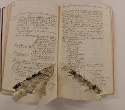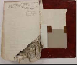 Die beiden Bände mit den Laufzeiten 1785-1804 und 1804-1823 waren in diesem Zustand aus konservatorischen Gründen nicht benutzbar. Hätte man sie in diesem Zustand in den Lesesaal gebracht, wäre es zum einen sehr schwierig gewesen, die Seiten umzublättern, und vor allem hätte die Gefahr bestanden, dass die Seiten dabei noch stärker beschädigt worden wären. Deshalb haben wir uns entschieden, die Bände zur Restaurierung in die Werkstatt für Buch- und Papierrestaurierung von Matthias Raum in Römerstein zu geben. Dort mussten die Bände neu gebunden werden. Die Fehlstellen der einzelnen Seiten wurden fachmännisch angefasert und anschließend neu gebunden. Letzte Woche brachte Herr Raum die Bände zurück ins Archiv. Das Ergebnis kann sich sehen lassen. Der Band kann nun Interessierten vorgelegt werden. Eine Bereitstellung als Digitalisat ist ebenfalls geplant. Die Kirchenkonventsprotokolle sind sozialgeschichtlich sehr interessante Quellen und werden von der Forschung genutzt.