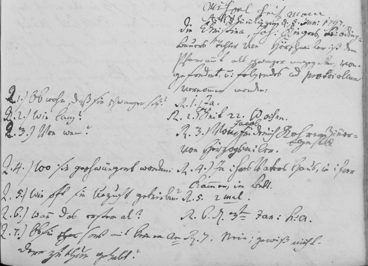 Es ist anzunehmen, dass der genannte Jacob Friderich Rohrer derjenige im Ortssippenbuch für Pfalzgrafenweiler unter Nr. 4747 aufgeführte ist.[4] Auch er wurde vom Kirchenkonvent befragt, leugnete aber, die Christina geschwängert bzw. überhaupt mit ihr Verkehr gehabt zu haben. Die Protokolle vom 5. und 6. Januar 1797 mit genaueren Angaben stehen online zur Verfügung.[5]