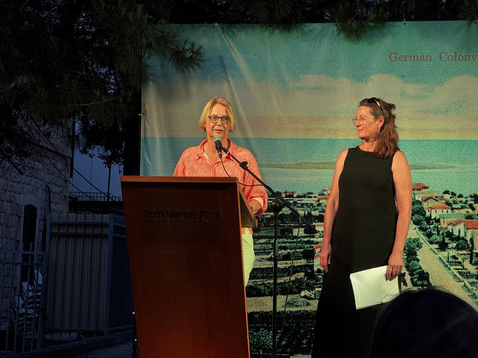 - Ausstellungseröffnung in Haifa. Leiterin des Stadtmuseums, und Künstlerin der Ausstellung in Haifa