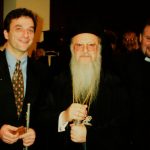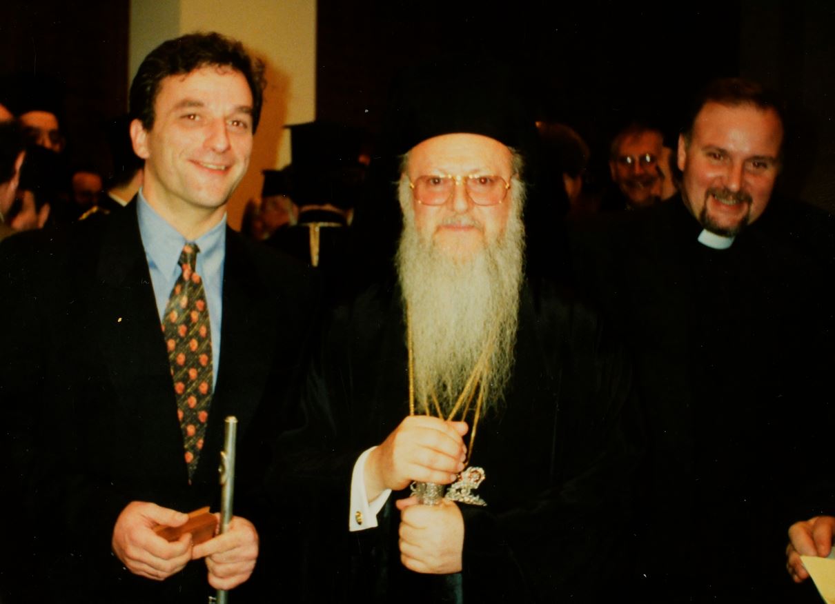 - Klaus Schwarz, links im Bild, mit dem ökumenischen Patriarchen von Jerusalem, Batholomäus, 1993. EABW, D 206, Nr. 4.