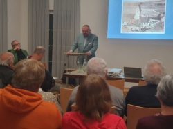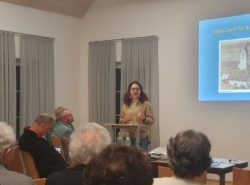 Hauptgegenstand des Vortrags von Bertram Fink war die unterschiedliche Entwicklung der Amstettener Ortsteile Amstetten-Dorf und Amstetten-Bahnhof bis zum Bau der Friedenskirche in Amstetten-Bahnhof im Jahr 1966.