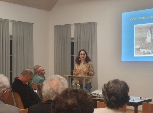 Wie allgemein bekannt, sind Kirchenbücher für die Genealogie und Familienforschung eine unersetzbare Quelle. Deshalb wurden die württembergischen und badischen Kirchenbücher digitalisiert und sind auf dem Kirchenbuchportal Archion verfügbar.. Demzufolge bildete die Gattungsgeschichte der Amstettener Kirchenregister von 1600 bis zu ihrer Formalisierung im 19. Jahrhundert einen Schwerpunkt im nächsten Vortrag von Birgitta Häberer. Dass Kirchenbücher darüber hinaus noch eine Vielzahl an anderen wertvollen Informationen für die Ortsgeschichte überliefern können, veranschaulichte ihr zweiter Schwerpunkt anhand ausgewählter Beispiele zu den Themenbereichen Krieg, Frieden, Seuchen/Krankheiten und Migration. So finden sich in den Amstettener Kirchenbüchern beispielsweise Einträge über die Bestattung ausländischer Soldaten und von Pfarrern verfasste Kurzbiografien von Dorfbewohnern.